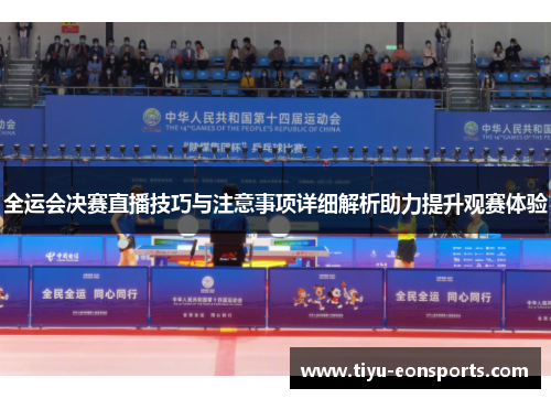 全运会作为我国规模最大、水平最高的综合性体育赛事,吸引了无数观众的关注。随着互联网直播技术的迅猛发展,越来越多的观众选择通过网络平台观看全运会决赛,而如何通过直播技巧和注意事项来提升观赛体验,成为了一个重要的话题。本文将从四个方面详细解析全运会决赛直播技巧及注意事项,帮助观众更好地享受比赛的精彩时刻。首先,我们将从直播平台的选择谈起,分析如何根据个人需求选择最适合的直播平台。其次,内容呈现的质量,包括画面清晰度、配音、解说等,都是提升观赛体验的关键因素。第三,观赛时的互动性与沉浸感,如何通过互动功能增强观众参与感和观赛的沉浸感。最后,赛事前后的信息预热与回顾,如何利用直播中的数据分析和专家点评,全面了解比赛。通过这些技巧和注意事项,观众可以在全运会决赛的直播中获得更高质量的观看体验。